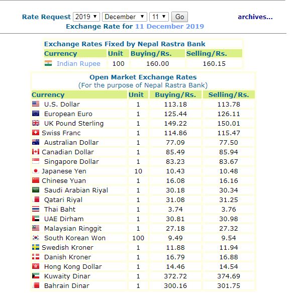 साथै आजको लागी राष्ट्र बैंकले बहराइ दिनार १ को खरिददर ३०० रुपैयाँ १६ पैसा तथा बिक्रिददर ३०१ रुपैयाँ ७५ पैसा रहेको छ ।