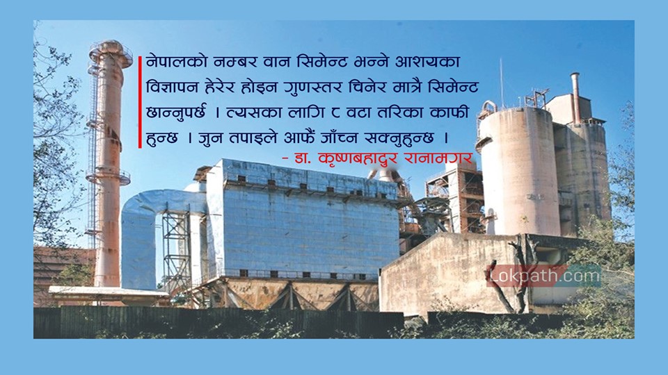 यसको लागि स्वार्थरहित भएर सँधै होसियारीसाथ कडा परिश्रम गर्नु पर्दछ । तर यसको विपरीत उत्पादनकर्ताहरू गुणस्तरीय सिमेन्ट उत्पादन गर्ने कार्यलाई वास्ता नगरी टेलिभिजन र रेडियोबाट नेपाल गुणस्तर चिन्ह पाएको भनेर आफ्नो सिमेन्टको बढाई चढाई आवश्यकताभन्दा बढी गरेर भजन गाउन थाल्दछन् । यही नै प्रवृत्तिले गर्दा सात दिन जमेको सिमेन्टमा एक वर्गसेन्टिमिटर क्षेत्रमा न्यूनतम दुईसय बीस किलोग्राम भारमा फुट्नु पर्नेमा केवल तेइस किलोग्राम भारमा नै सिमेन्ट स्याम्पल चकनाचूर भएको छ । तीन दिनमा न्यूनतम साठी किलोग्राम भारमा फुट्नुपर्नेमा उन्नाइस किलोग्राम भारमा नै फुटेको छ ।