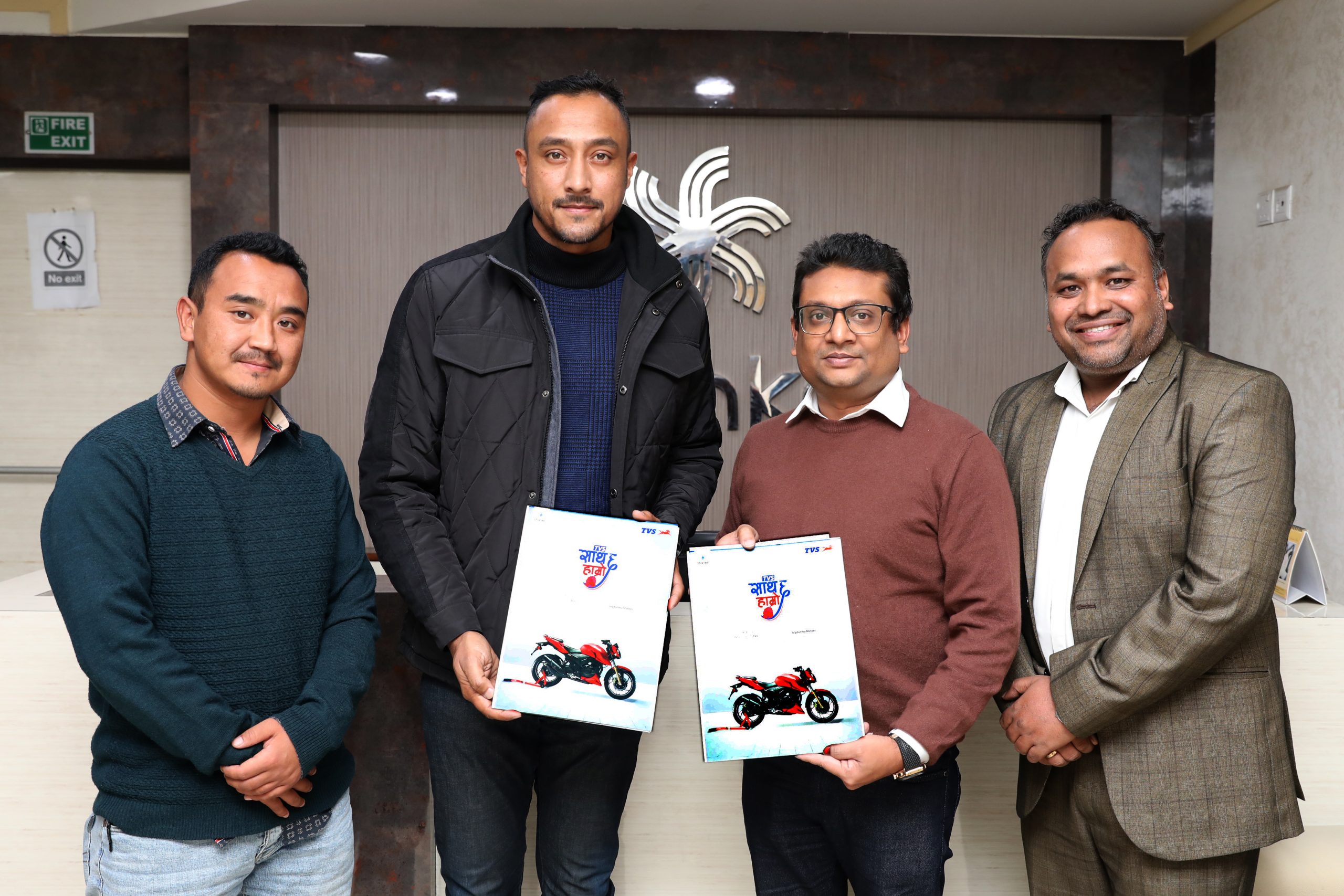 विश्व विख्यात टि.भि.एस. मोटर साईकलका नेपालको निम्ती आधिकारीक बिक्रेता जगदम्बा मोटर्स् प्रा.लि. ले आफ्नो देशव्यापी डिलरहरुको सञ्जाल मार्फत बिक्री वितरण गर्दै आईरहेको छ । कम्पनीले सधै विभिन्न खेलकुदहरुलाई प्रायोजन गर्दै आएको छ भने विभिन्न प्रतियोगिताहरु संग आवद्ध पनि हुदै आएको छ र भविष्यमा पनि यस्ता खेलकुदहरुलाई सधै प्रोत्साहन गर्ने प्रतिवद्धता जनाएको छ ।