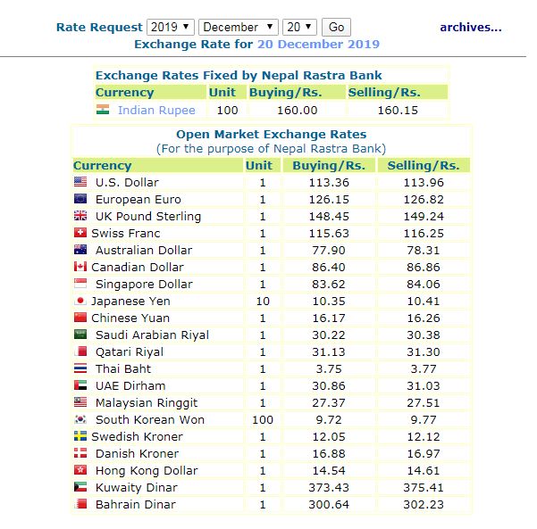 साथै आजको लागी राष्ट्र बैंकले बहराइ दिनार १ को खरिददर ३०० रुपैयाँ ६४ पैसा तथा बिक्रिददर ३०२ रुपैयाँ २३ पैसा रहेको छ ।