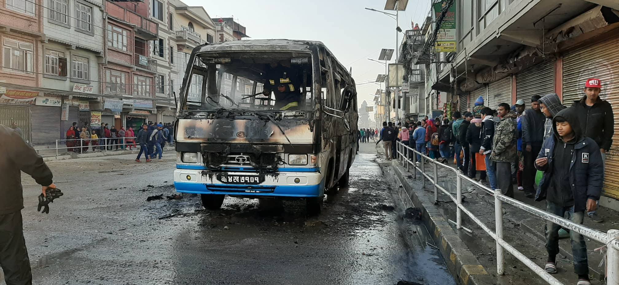 सुकेधारामा बसको ठक्करबाट छात्राको मृत्यु : आक्रोशित विद्यार्थीद्वारा दुईवटा बसमा आगजनी