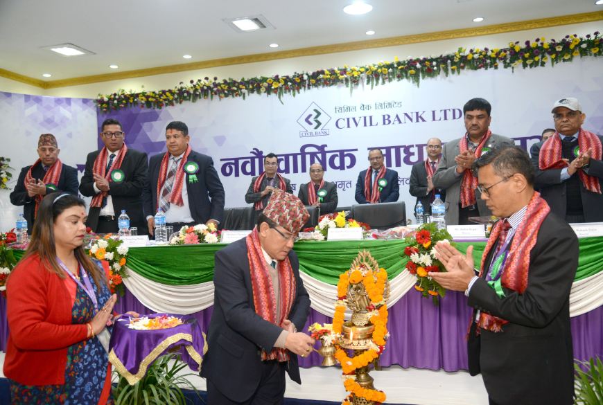 काठमाडौं । सिभिल बैंक लिमिटेडले आफ्नो ९ औँ वार्षिक साधारण सभा आइतवार सम्पन्न गरेको छ । उक्त साधारण सभाले शेयरधनीहरुलाइ नगद लाभांशवितरण गर्ने भएको छ ।