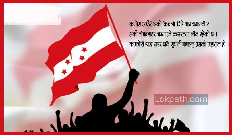लोकतन्त्र नै प्रतिरक्षात्मक अवस्थामा पुगेको र प्रतिक्रान्तिका संवाहकहरूको मनोबल दिनानुदिन घनीभूत हुँदैगएको परिप्रेक्षमा नेपाली काँग्रेसजस्तो लोकतन्त्रका लागि लडेको, भिडेको र मरिमेटेको पार्टीले आफ्नो अगुवा भूमिका देखाउनु पर्ने हो, तर काँग्रेस यतिबेला सत्ताका गल्ती र समाजबाट उठ्ने निर्मला पन्त बलात्कार÷हत्या प्रकरण वा रवि लामिछाने पक्राउ वा ज्ञानेन्द्र शाहीको भाषणबाट उठेका तरङ्ग र पशुपति शर्माले गाईदिएको गीतले सत्ताको शेखी झारिदिएकोले ताली पिटेर सघाउने काम मात्र भएको छ । यस्तो अवस्थामा पनि काँग्रेस आफैँभित्रको किचलो, गिद्दे झम्टाझम्टी र अर्को जंगबहादुर जन्माउने कसरतमा लीन रहेको छ ।
