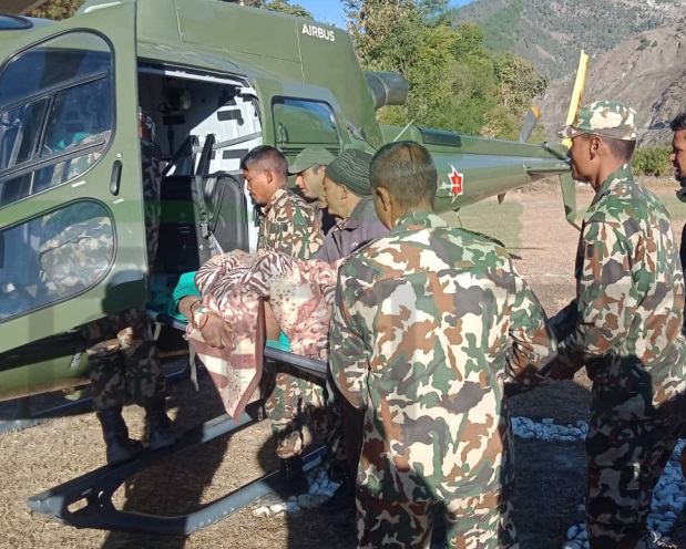 सेनाको हेलिकोप्टर मार्फत सुत्केरीको उद्धार