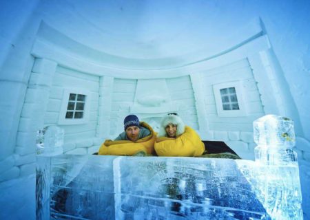 त्यस्तै अनौठो होटलको बारेमा हामी आज जानकारी दिँदैछौँ । यो होटल जाडो याममा बनाइएको होटल हो । जो पाँच महिना पछि नदीमा डुब्छ । सन् १९८९ मा यो होटल पहिलो पटक बनेको थियो । र अहिलेसम्म पनि मात्र पाँच महिनाको लागि निर्माण गरिन्छ । यो होटल बरफले बनाइएको छ । जो जाडो यामका ५ महिनाको लागि मात्र सञ्चालन हुन्छ ।