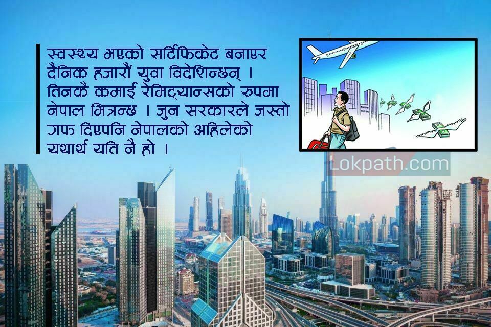 रोजगारीको सिलसिलामा आफ्नो देश भन्दा बाहिर श्रमको लागि जानु नेपाल जस्तो विकासशिल राष्ट्रको बाध्यता नै हो भन्दा अतियुक्ति नहोला । हालसम्म नेपालको विश्वका धेरै राष्ट्रसँग श्रम सम्झौता भएको वैदेशिक रोजगार विभागको तथ्यांकमा रहेको छ । जस अनुसार हालसम्म करिब ४० लाख युवाहरु विश्वका विभिन्न मुलुकमा रहेका छन् । उनीहरुले पठाएको रेमिट्यान्स नै नेपाली अर्थतन्त्रको एक मानकको रुपमा हेरिन्छ । वैदेशिक रोजगारीमा जानु आफैमा नराम्रो होईन । बाहिरी देशबाट सिकेर आएको सीप तथा पूँजीबाट स्वदेशमा नै नयाँ रोजगारी सिर्जना गरि आत्मनिर्भर भएको धेरै उदाहरणहरु रहेका छन् ।