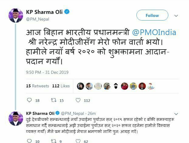 — PMO Nepal (@PM_Nepal) January 1, 2020