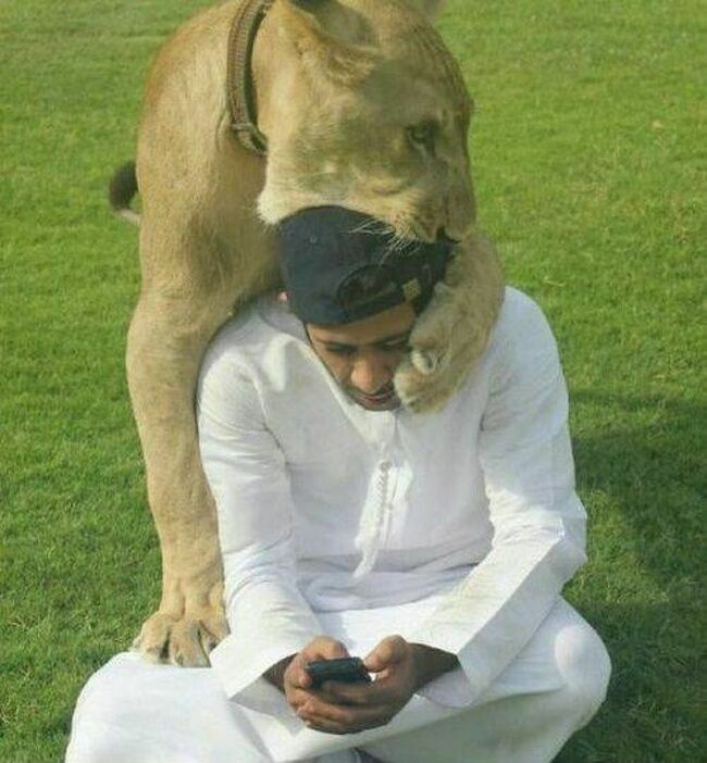 सिंहले उसको मालिकको ध्यानाकर्षण गर्न खोजिरहेको छ जसरी हाम्रो घरमा बिरालोले गर्छन्