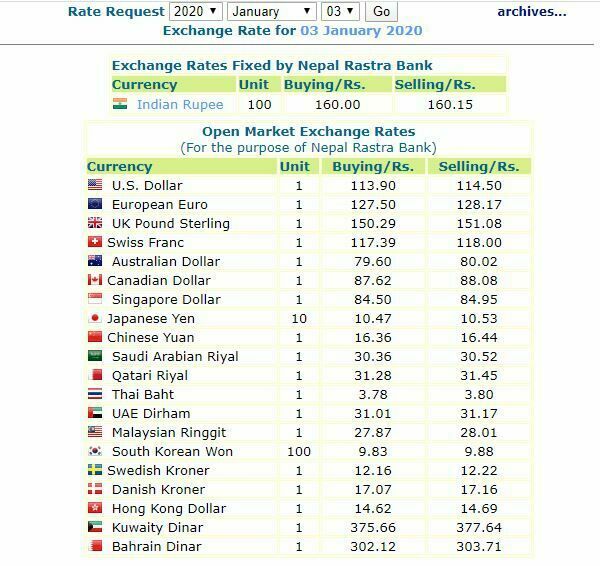 साथै आजको लागि राष्ट्र बैंकले बहराइ दिनार १ को खरिददर ३०२ रुपैयाँ १२ पैसा तथा बिक्रिददर ३०३ रुपैयाँ ७१ पैसा रहेको छ ।