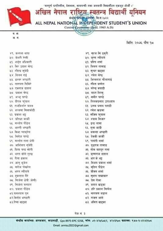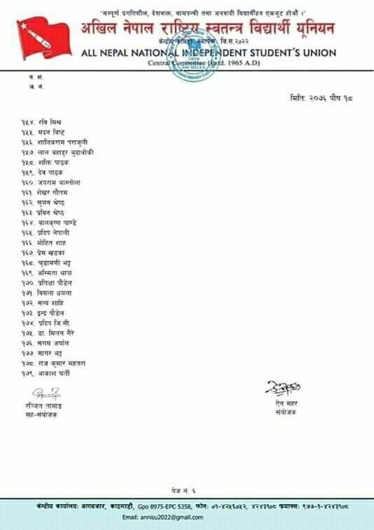 पार्टीले हितमान शाक्यलाई विद्यार्थी संगठनको इन्चार्ज बनाएको छ भने विनोद ढकाल सह-इन्चार्जमा बनेका छन्।