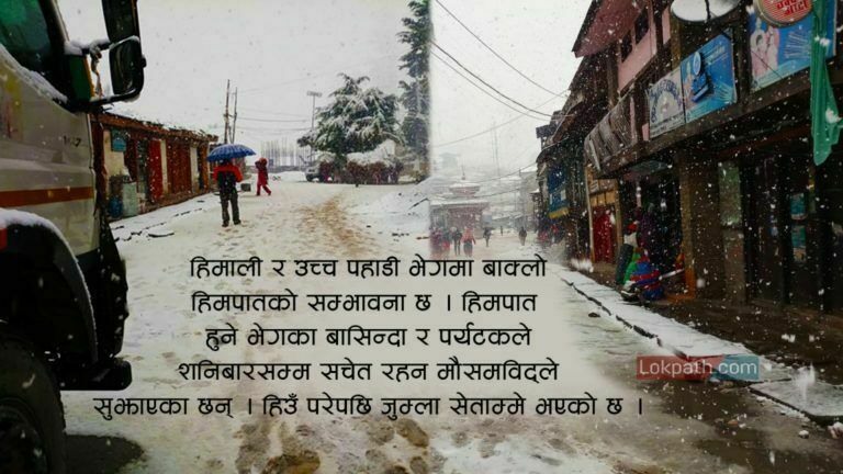 काठमाडौँ । केहिदिनदेखि परेको वर्षा, त्यसपछि भएको हिमपात र चिसो बतासका कारण जनजीवन प्रभावित बनेको छ । केही स्थानको तापक्रम माईनस (-)मा झरेको छ भने अधिकांश स्थानको न्यूनतम तापक्रम १० डिग्री सेल्सीयस भन्दा कम छ । मौसम पूर्वानुमान महाशाखाले आज अर्थात् पुस २० गते आइतबारको मौसमको पूर्वानुमान सार्वजनिक गर्दै विगत केहिदिन देखी हिमाली भेगमा हिमपात तथा पहाड तथा तराइका कतिपय स्थानमा मौसम बदलीसँगै वर्षा भएकोमा अब सुधार आउने जानकारी दिएको छ ।
