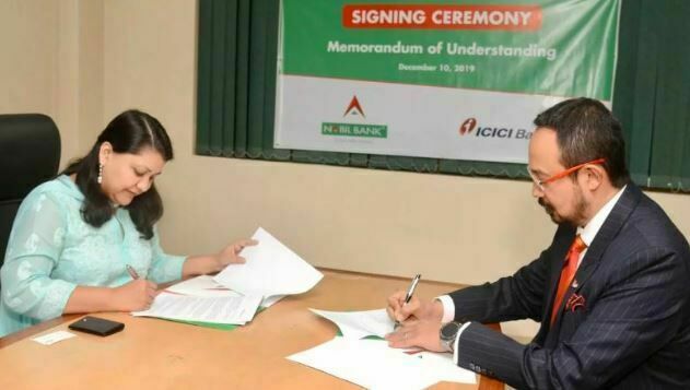 काठमाडौं । नबिल बैंक लिमिटेड र भारतको आइसीआइसी आइ बैंकबीच एक सम्झौता भएको छ । आइसीआइसी बैंकले नेपालमा प्रतिनिधि कार्यालय खोल्नको लागि तयारी गरिरहेको छ । त्यसको लागि व्यापार तथा लगानीको लागि आइसीआइसीले नबिल बैंकलाई सहयोग गर्ने भएको छ ।