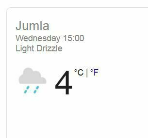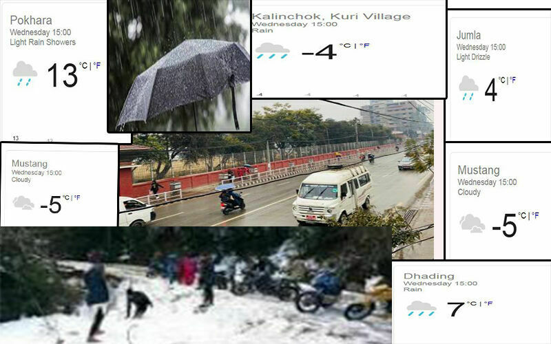 पूर्वी भू- भागमा हल्का बर्षाको सम्भावना छ। देशका उच्च पहाडी तथा हिमाली भू -भागका केही स्थानहरुमा मध्यम देखि भारी हिमपात हुने सम्भावना रहेको महाशाखाले जनाएको छ।