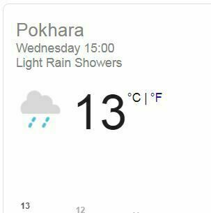 काठमाडौं – यतिबेला काठमाडौंमा वर्षा भएको छ । पश्चिमी न्यून चापीय प्रणालीको प्रभावका कारण मौसमी प्रणालीमा हिजोबाट उतारचढाव आएको छ । यतिबेला काठमाडौं उपत्यकासहित देशका धेरै ठाउँमा मेघगर्जनसहित पानी परिरहेको छ । मौसमविद्का अनुसार आज साँझसम्मै उपत्यकासहित मध्य र पूर्वमा धुम्म परिरहेको मौसम रहिरहने र मेघगर्जनसहित पानी पर्नेछ ।