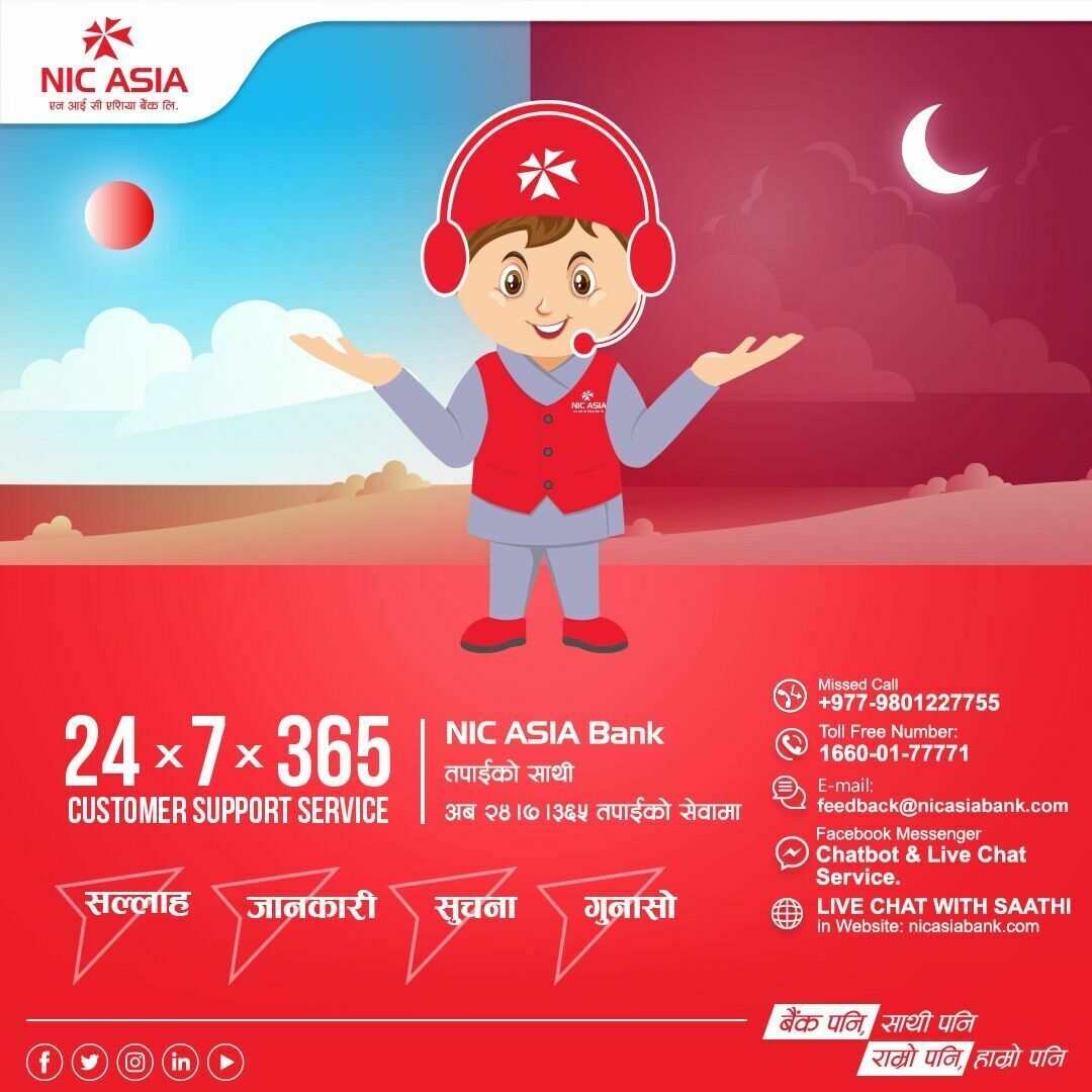 काठमाडौं । एन आई सी एशिया बैंकले आफ्ना ग्राहकहरुलाई आधुनिक तथा प्रतिष्पर्धी सेवा प्रदान गर्नका लागि सपोर्ट सेवा २४ सै घण्टा सञ्चालन गर्ने भएको छ । बैंकले उक्त सेवा २०७१ साल देखि नै सञ्चालन गरेको थियो । ग्राहकहरुलाई कुनै सहायता आवश्यक्ता परेमा ३६५ दिन र २४ सै घण्टा सञ्चालन गर्न लागिएकोे बैंकले जनाएको छ । ग्राहकहरुले सहायताको लागि उक्त सेवा मार्फत भएका गुनासो सुनुवाई गर्नुका साथै आवश्यक सुचना समेत उपलब्ध गराउँने विश्वास बैंकले लिएको छ ।