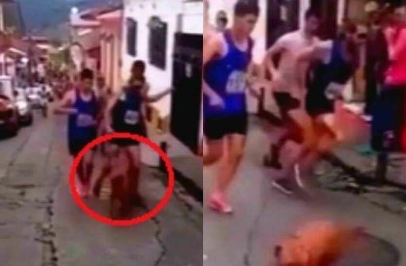 त्यसैबेला अचानक रोडमा कुकुर आइपुग्यो । जमाईले लात्तीले हानेर कुकुरलाई पाखा लगाए,अनि आफू पुनः दौडिन थाले । घटनाको भिडियो कसैले क्यामेरामा कैद गरेको थियो ।