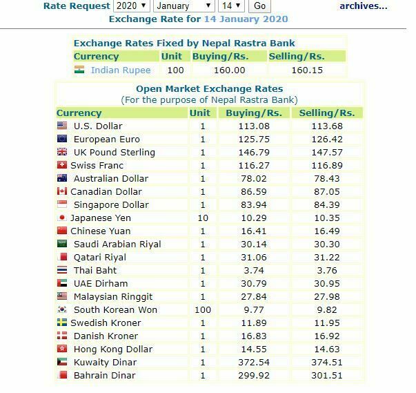 साथै आजको लागि राष्ट्र बैंकले बहराइ दिनार १ को खरिददर २९९ रुपैयाँ ९२ पैसा तथा बिक्रिददर ३०१ रुपैयाँ ५१ पैसा रहेको छ ।