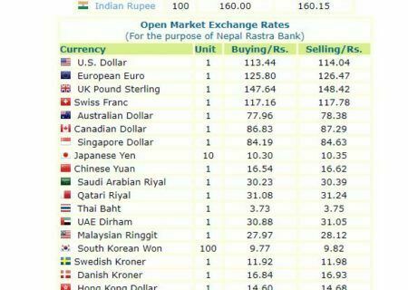 यस्तो छ आजको विनिमयदरः