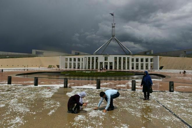 सोमबार अपरान्ह देशको राजधानी क्यानबेरामा बलजत्रो असिना परेको हो । असिना परेसँगै कोही मानिस ओत लाग्न दौडिए भने असिनाको सम्भावित क्षतीबाट बच्नका लागि ड्राइभरले आफ्नो साधनलाई अन्डरग्राउन्ड पार्किङतिर कुदाए ।
