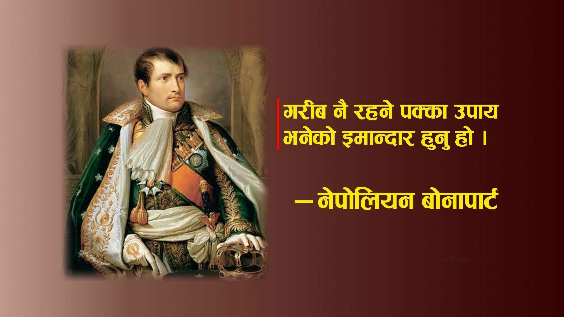 काठमाडौं । नेपोलियन बोनापार्ट एक फ्रान्सेली सैनिक तथा राजनीतिक नेता थिए । जसले पछिल्लो फ्रान्सेली क्रान्ति तथा यससँग सम्बन्धित युद्धका समयमा ख्याति कमाए ।