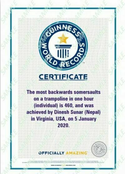 रेकर्ड पूरा गरेको एक हप्तापछि नासो, एनआरएनए, बिएएनए र ब्यालेन्स मिडियाको संयुक्त आयोजनामा प्रमाणपत्र साथै सम्मानपत्र प्राप्त गरेको जानकारी उनले लोकपथलाई दिए ।
