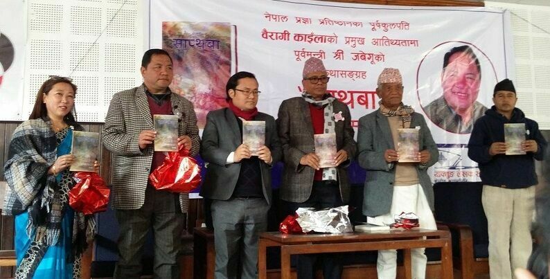 काठमाडौं । पूर्वमन्त्री श्री प्रसाद जबेगूको कथा संग्रह ‘साप्थबा’ विमोचन गरीएको छ । शनिबार ललितपुर स्थित चुम्लुङहिममा एक समारोहकाबीच उक्त कथा संग्रह विमोचन गरेको हो । नेपाल प्रज्ञा प्रष्तिष्ठानका पूर्व कुलपती वैरागी काइँलाको प्रमुख अतिथ्यतामा संग्रहको विमोचन गरीएको हो ।