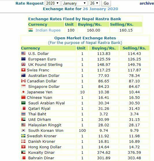 त्यस्तै साउदी अरबियन रियाल १ को खरिददर ३० रुपैयाँ ३४ पैसा तथा बिक्रिददर ३० रुपैयाँ ५० पैसा रहेको छ ।