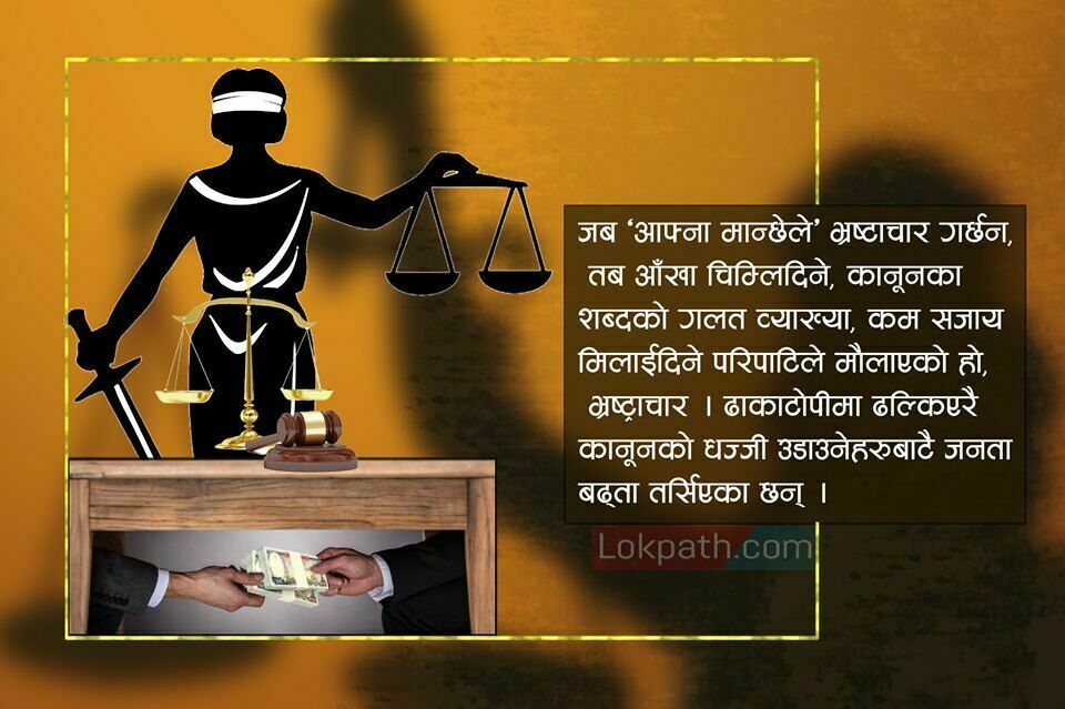 अन्त्यमा, गम्भिर प्रकृतिको सामाजिक तथा आर्थिक अपराध नै भ्रष्ट्राचार हो । यसले समाजलाई क्षयिकरणको मार्गमा लैजान उद्धत गराउँदछ । त्यसैले नेपाल मात्र नभएर विश्व समुदाय नै यसलाई निर्मुल पार्नका लागि लाग्नु पर्ने देखिन्छ । यसको मुख्य कानुनी प्रावधान भनेको शुन्य सहनशिलता नै हो । त्यतिमात्र नभएर त्यसको अन्त्यका लागि समाजमा भ्रष्ट्राचार बहिस्कार नीति अवलम्बन गर्ने, राज्यका स्थानिय देखि केन्द्रिय तहसम्म त्यसको निर्मुलीकरणको लागि कार्यक्रम तथा जनचेतना जगाउने, वित्तीय अनुशासनका कार्यक्रमका योजनाहरु ल्याउने आदी कामहरु गर्नाले समाजबाट भ्रष्ट्राचार केही हदसम्म निर्मूल हुन सक्नेछ । त्यस्तै भ्रष्ट्राचार नियन्त्रणका लागि नियामक निकायहरु वृृद्धि गर्ने तथा त्यसको नेतृत्व तहमा समेत असल र योग्य व्यक्ति खटाउने गर्नुपर्दछ । त्यसरी सरकारले राष्ट्र निर्माणका लागि लिएको उदेश्यलाई पूरा गर्नका लागि सर्वप्रथम भ्रष्ट्राचार निर्मुल बनाउने कार्यक्रमहरु ल्याउनु पर्दछ । जब सरकारले भ्रष्ट्राचार नियन्त्रण को अभियान चलाउन सक्दछ तबमात्र सरकारको समृद्ध नेपाल, सुखी नेपालीको नाराले पुर्णता पाउन सक्छ ।
