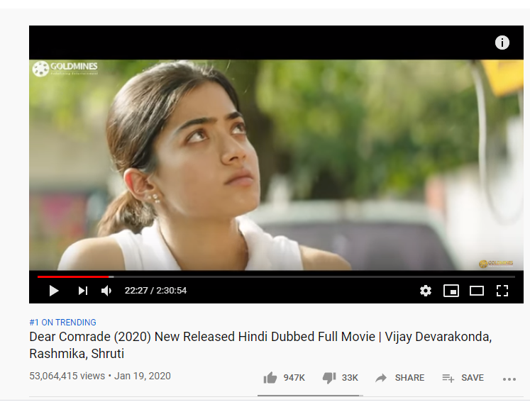करीब एक/दुई हप्ता अगाडी युट्युबमा सार्वजनीक भएको साउथ इन्डिएन मुभि ‘डियर कमरेड’ ले नेपालमा चर्चा कमाएको छ ।