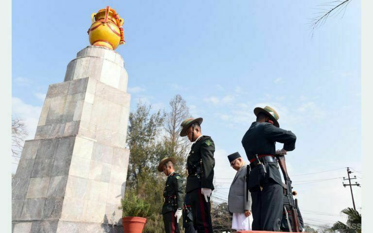 काठमाडौं । प्रधानमन्त्री केपी शर्मा ओलीले शहीद दिवसका अवसरमा लैनचौरस्थित शहीद स्मृति पुगी शहीदप्रति श्रद्धाञ्जली अर्पण गरेका छन् ।