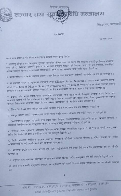 यसैगरी मन्त्रिपरिषद बैठकले विश्वविद्यालय अनुदान आयोगको रिक्त सदस्य पदमा त्रिभुवन विश्वविद्यालयका उपकुलपति प्रा. डा. धर्मकान्त बास्कोटा र काठमाडौं विश्वविद्यालयका उपकुलपति प्रा.डा. रामकण्ठ मकाजुलाई मनोनयन गरेको छ । त्यस्तै वीपी कोइराला मेमोरियल क्यान्सर अस्पताल सञ्चालन समितिको अध्यक्षमा बर्दियाका निर्मल लामिछानेलाई तीन वर्षका लागि मनोनित गरेको छ ।