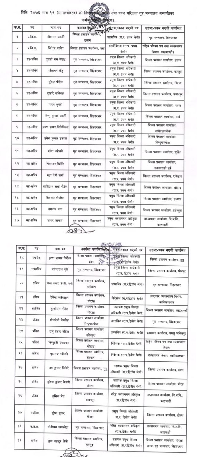 गृहमन्त्री रामबहादुर थापाले आइतबार उनीहरुको सरुवा गर्ने निर्णय गरेका हुन् । सरकारले सहसचिवस्तरका १७