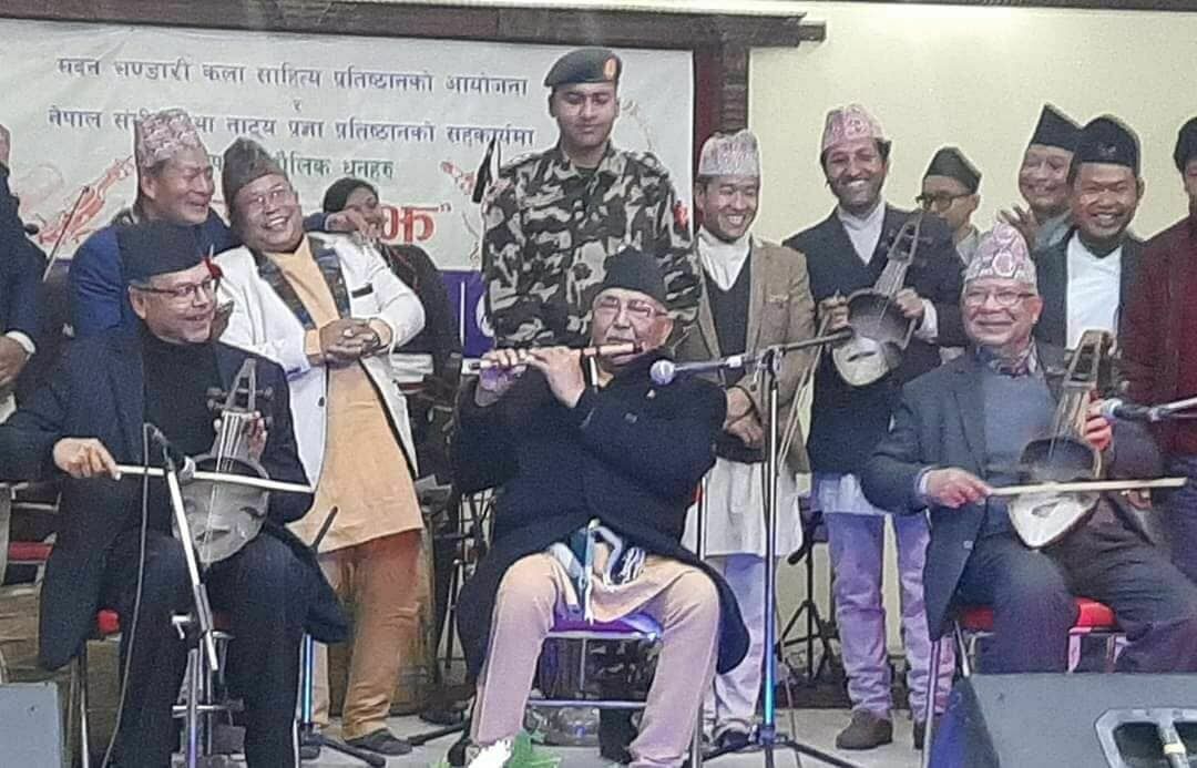 सो अवसरमा प्रधानमन्त्री ओलीले सारङ्गी र बाँसुरी बजाएको कला प्रतिष्ठानका महासचिव डा देवी नेपालले जानकारी दिए ।