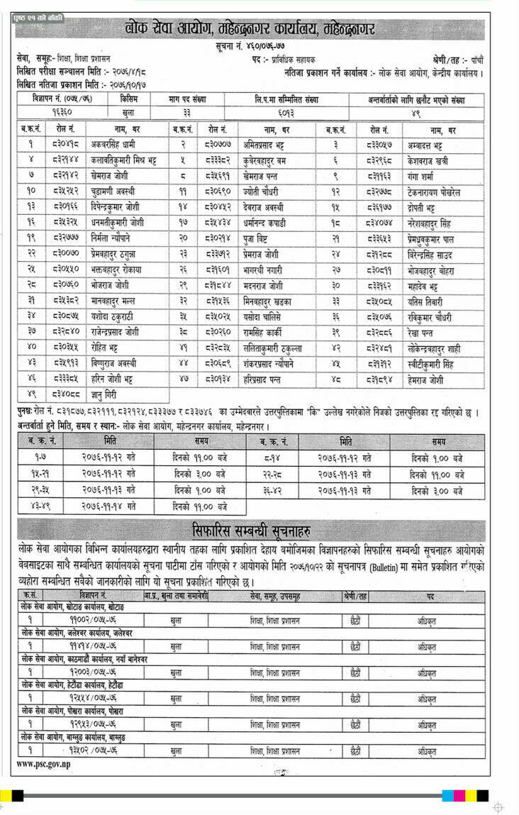 काठमाडौँ । लोकसेवा आयोगले स्थानीय तहका विभिन्न पदका लागि लिएको लिखित परीक्षाको नतिजा सार्वजनिक गरेको छ । आयोगले सफल उम्मेदवारलाई सामूहिक परीक्षण र अन्तर्वार्ताका लागि बोलाइको छ ।