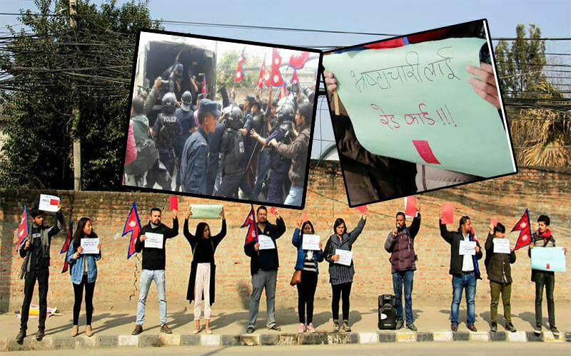 बालुवाटारस्थित ललितानिवास अगाडि ‘भ्रष्टचारीलाई रेड कार्ड’ अभियान सञ्चालन गर्न पुगेका विवेकशील नेपाली दलका रञ्जु दर्शनासहित ११ जना कार्यकर्तालाई प्रहरीले नियन्त्रणमा लिएको हो ।
