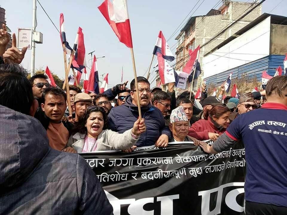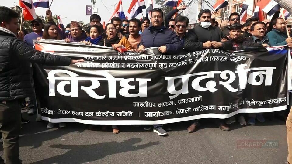 काठमाडौं । नेपाली कांग्रेसको भातृ संगठन नेपाल तरुण दलले ललिता निवास प्रकरणमा राजनीतिक पूर्वाग्रहका आधारमा अख्तियार दुरुपयोग अनुसन्धान आयोगले भ्रष्टाचारको मुद्दा चलाएको भन्दै आइतबार विरोध प्रदर्शन गरेको छ ।