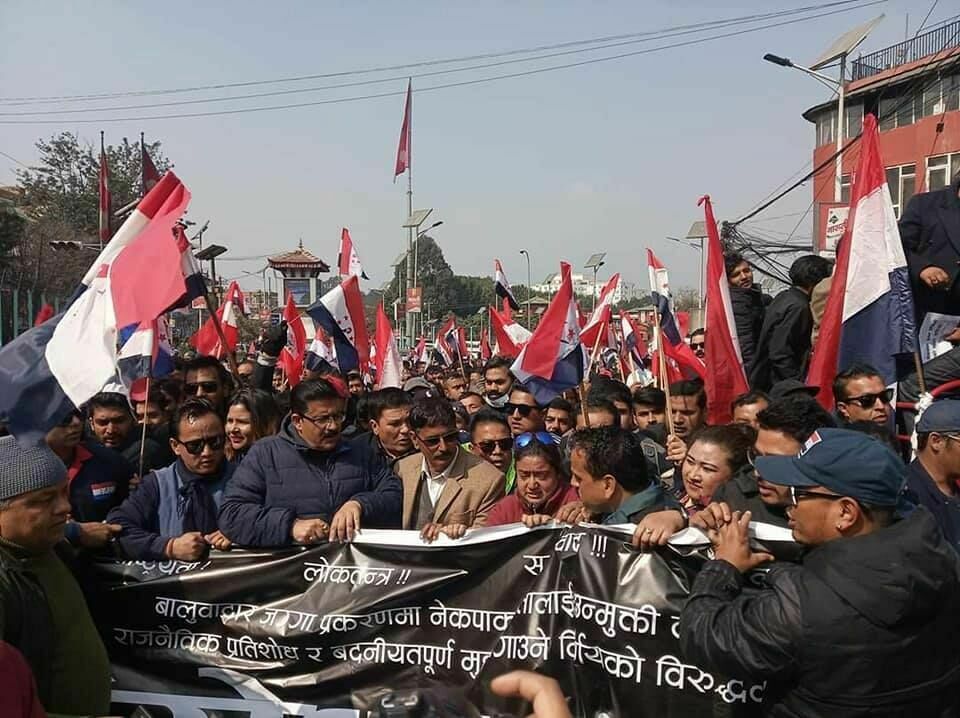 तरुण दलका अध्यक्ष जीतजंग बस्नेत, नेपाल विद्यार्थी संघका अध्यक्ष राजीव ढुंगाना लगायतका भातृ संगठनहरुका नेता कार्यकर्ताहरु प्रदर्शनमा सहभागि थिए ।