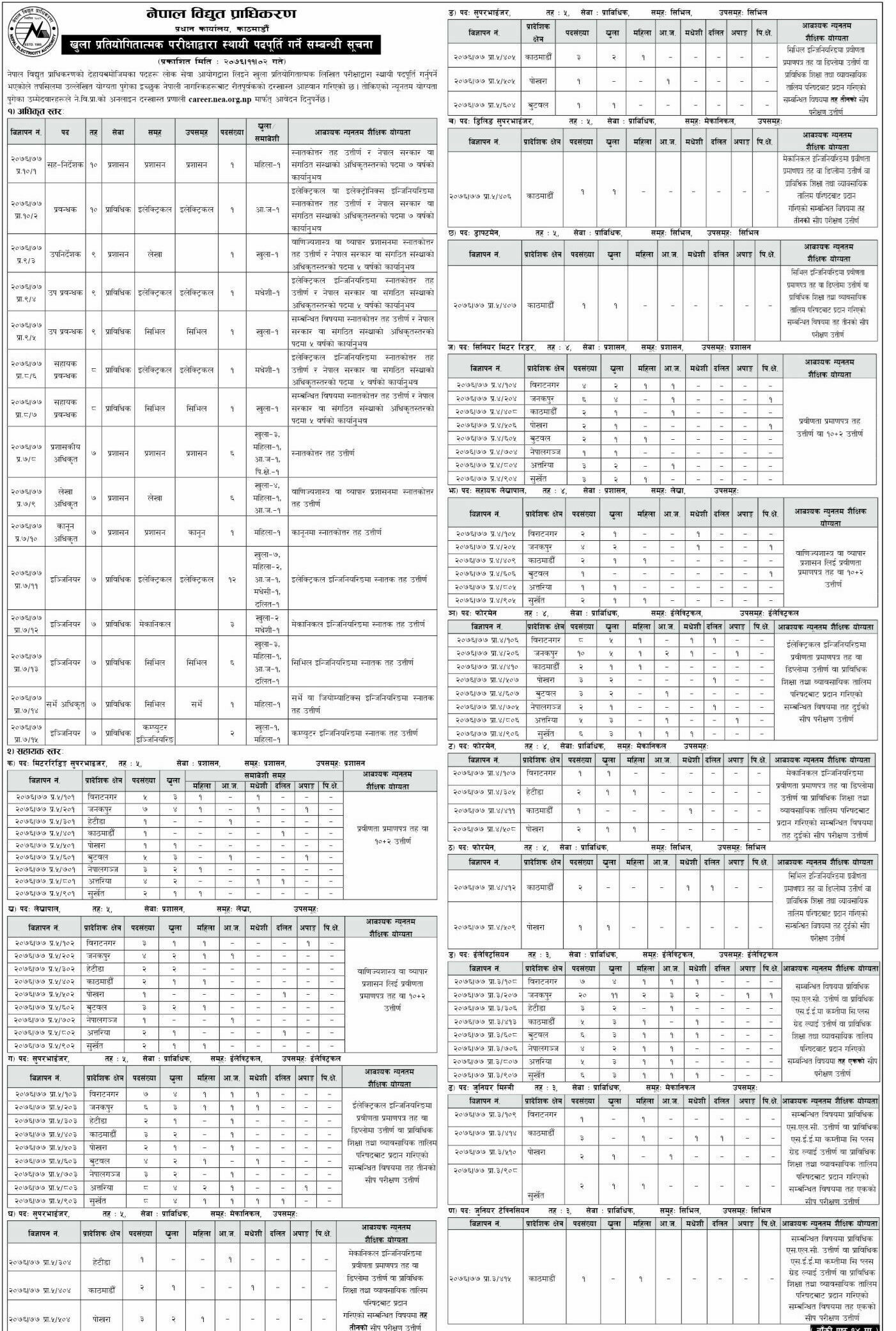काठमाडौँ। नेपाल विद्युत प्राधिकरणले विभिन्न पदमा कर्मचारी माग गरेको छ । प्राधिकरणले शुक्रबार खुला प्रतियोगितात्मक परीक्षाद्वारा स्थायी पदपूर्ति गर्नेगरी दरखास्त आह्वान गरेको छ ।