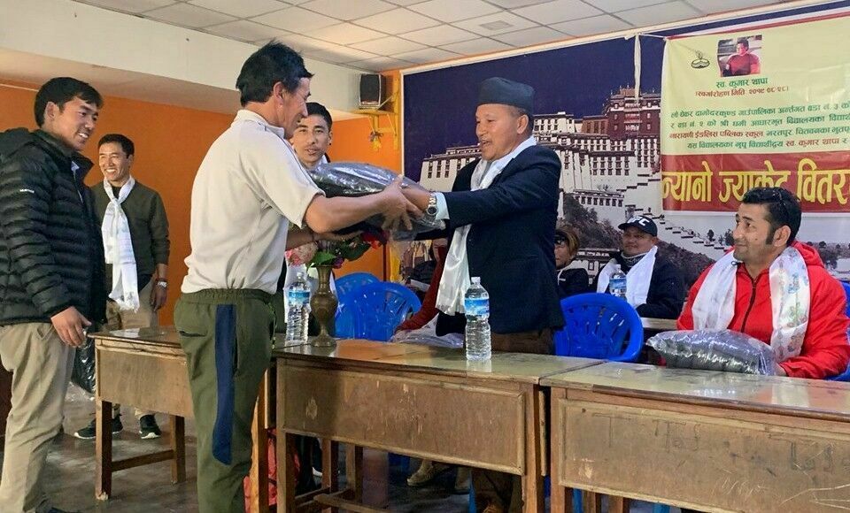 एक कार्यक्रम गरि उपल्लो मुस्ताङका १६० जना विद्यार्थीलाई न्यानो कपडा (ज्याकेट) वितरण गरिएको हो । सो कार्यक्रमलाई सम्बोधन गर्दै नेपाली कांग्रेसका नेता एंव पूर्वमन्त्री रोमी गौचन थकालीले मुस्ताङको विकासमा अहिलेका स-साना बालबालिकाहरूको योगदान भविष्यमा महत्वपूर्ण हुने बताए ।