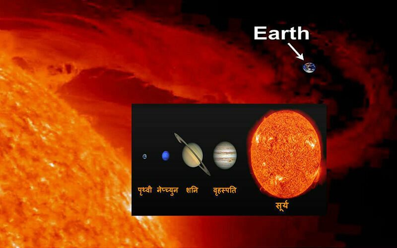 भनिन्छ, सूर्यभित्र पृथ्वी जस्ता १०९ वटा संरचना अटाउन सक्छन् । सूर्यलाई हेलिस्कोप नामक यन्त्रबाट हेर्न सकिन्छ ।