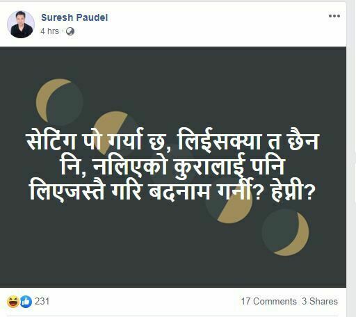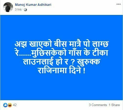 सामाजिक सञ्जाल प्रयोगकर्ताले गहिरो दुख व्यक्त गर्दै प्रधानमन्त्रीको निर्णय कुरेको सम्म लेखेका छन् ।