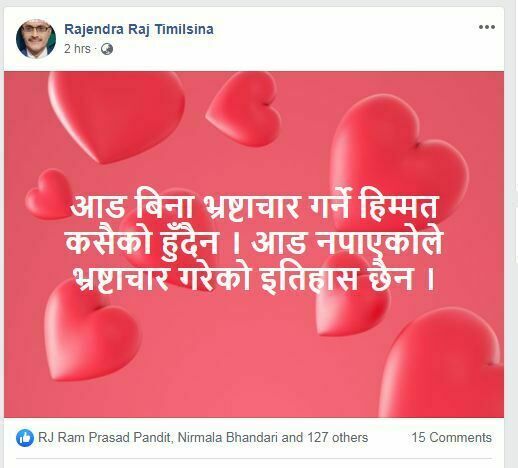 देश अधोगतिमा लाग्नुको कारण यी यस्तै ध्रष्टाचार र घुसखोरीम लिप्त मानसिकता जिम्मेवार रहेको भन्दै नागरिकले चिन्ता व्यक्र गरेका छन् ।