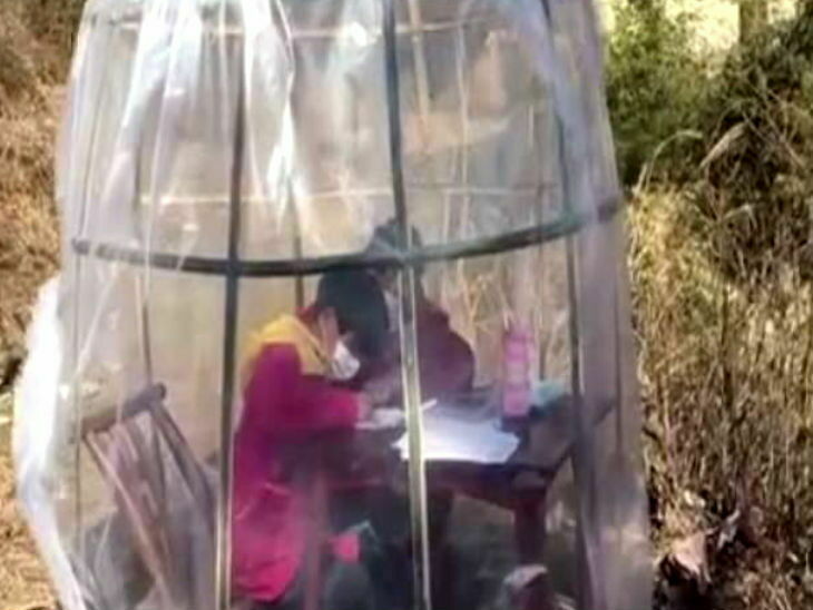 त्यहाँ एक महिलाले आफ्नी छोरीलाई अनलाइन क्लासेसका लागि घर बाहिर एन्टी कोरोना भाइरस टेन्ट बनाएकी छिन् । उनको घरभित्र नेटवर्क राम्रोसँग नटिप्ने भएकोले उनले घर बाहिरै अस्थाई क्लास रुम बनाएकी हुन् ।