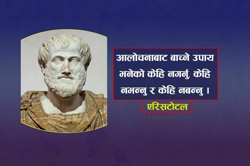 ३. आलोचनाबाट बँच्ने उपाय भनेको केहि नगर्नु, केहि नभन्नु र केहि नबन्नु हो। एरिसटोटल