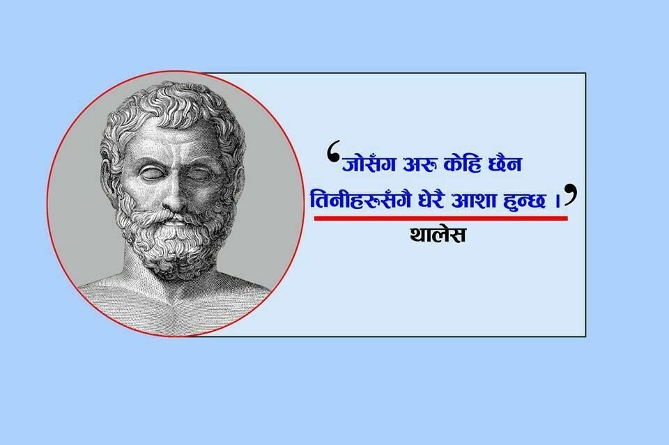 काठमाडौं । थालेसको जन्म ग्रीकको सानो राज्य माइलेट्स नगरमा भएको थियो । उनलाई प्रथम युनानी दार्शनिकका रुपमा चिन्ने गरिन्छ ।