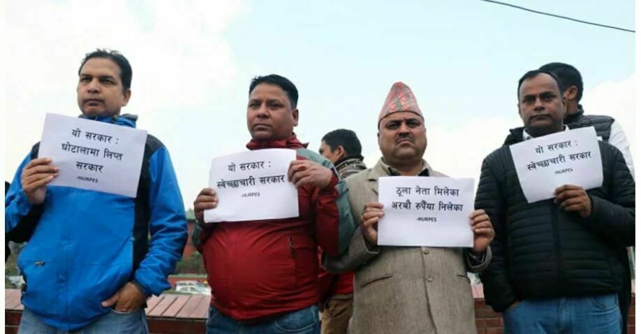 शान्ति समाजले बालुवाटारको ललिता निवास जग्गा प्रकरण, वाइडबडी विमान खरिद प्रकरण, सेक्युरिटि प्रिन्टिङ प्रेस खरिदलगायतका काण्डको छानबिन गरी कारबाहीको माग गर्दै प्रदर्शन जनाएको छ । त्यहा उपस्थितहरुले यो सरकारः घोटलामा लिप्त भएको सरकार, ठुला नेता मिलेका अर्बाै रुपैयाँ निलेका लगायतका पर्चा लिएर विरोध प्रदर्शन गरेको हो ।
