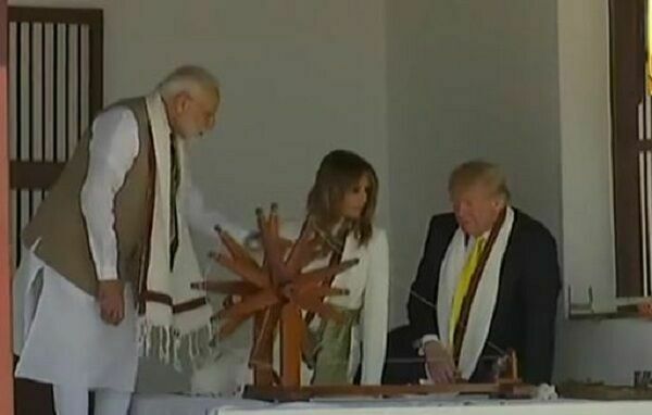 ट्रम्पले सावरमती आश्रममा रहेको एक चर्खा चलाएका छन् । ट्रमले पत्नीसँगै बसेर चर्खा चलाएका भारतीय सञ्चारमाध्यमले जनाएका छन् ।