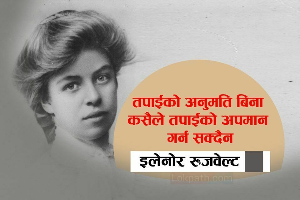 १०. तपाईको अनुमति बिना कसैले तपाईको अपमान गर्न सक्दैन । -इलेनोर रुजवेल्ट