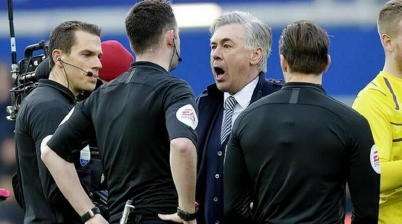 खेल सकिएपछि म्याच रेफ्री क्रिससँग विवाद गरेपछि एन्सेलोटीलाई रातो कार्ड देखाईएको थियो । जुन खेलमा एभर्टन युनाइटेडसँग १-१ गोलको बराबरीमा रोकिएको थियो ।
