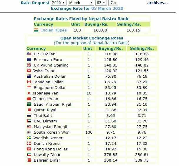त्यस्तै साउदी अरबियन रियाल १ को खरिददर ३० रुपैयाँ ९४ पैसा तथा बिक्रिददर ३१ रुपैयाँ १० पैसा रहेको छ ।